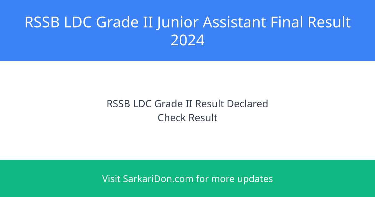 ๐ RSSB LDC Grade II / Junior Assistant 2024 Final Result Declared: 3947 Candidates Selected!