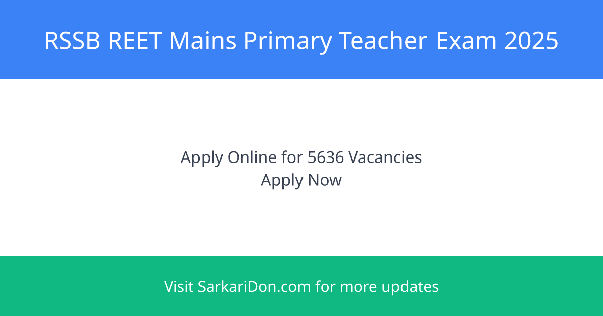 RSSB REET Mains Primary Teacher Examination 2025 β 5636 Vacancies | Apply Nov 7 - Dec 6, 2025