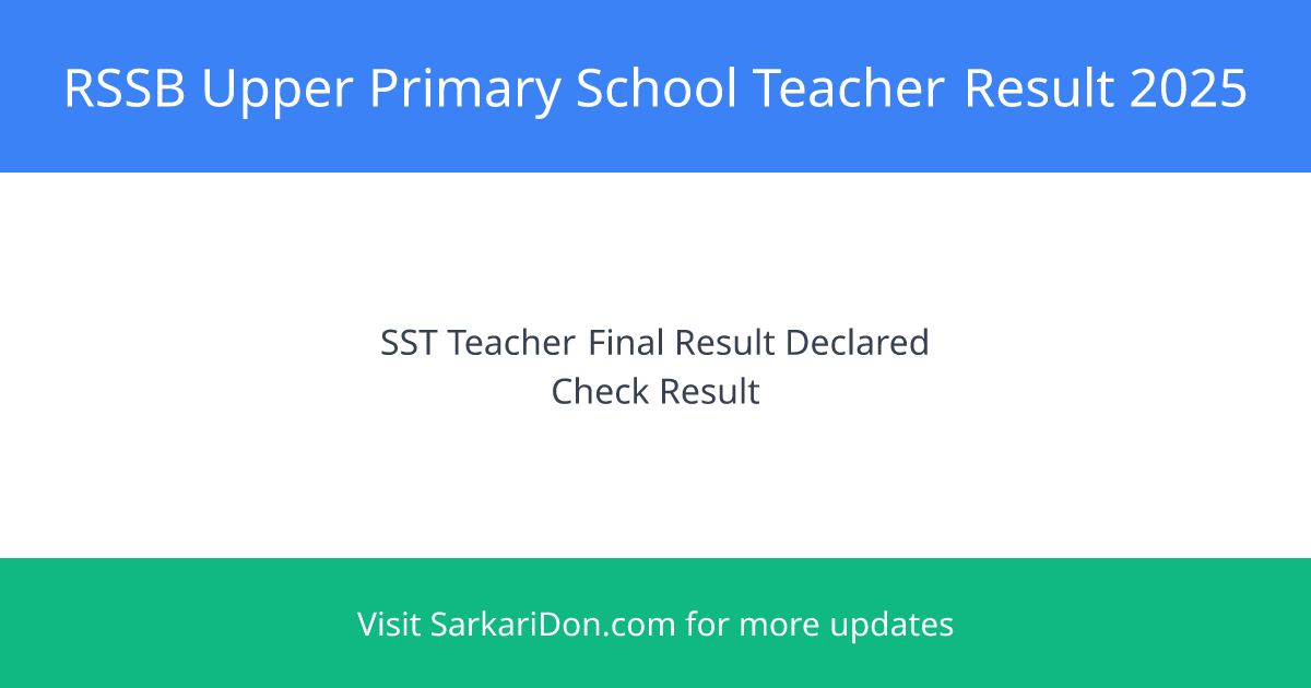 RSSB Upper Primary School Teacher 2022 (SST) Final Result Published - Check Your Status Now!