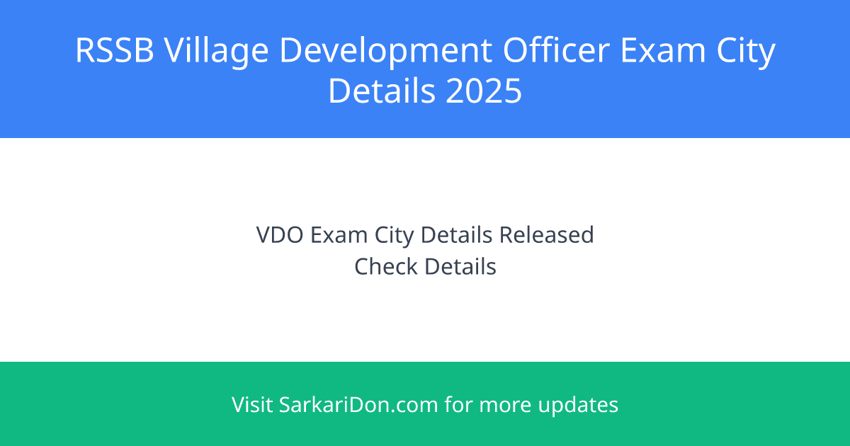 The Rajasthan Staff Selection Board (RSSB) has released the exam city details for the recruitment of Village Development Officer (VDO) for the year 2025. The examination will be held on November 2, 2025. Candidates who have applied can now check their exam city details and soon the admit cards will be released.