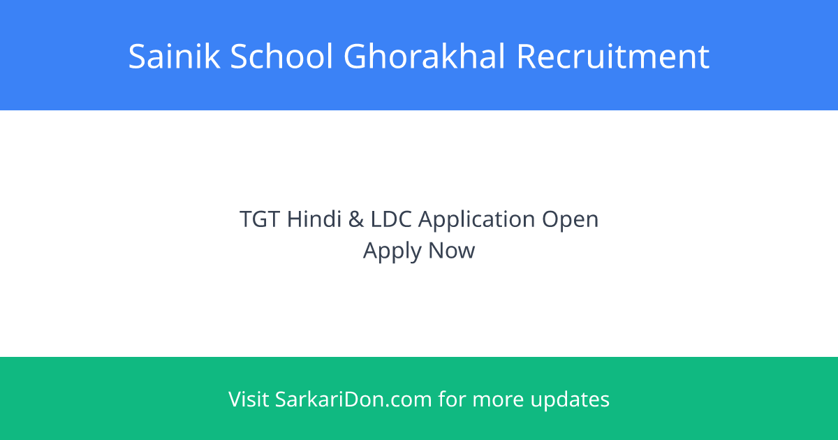 Sainik School Ghorakhal Recruitment for TGT (Hindi) and LDC - Apply Now!