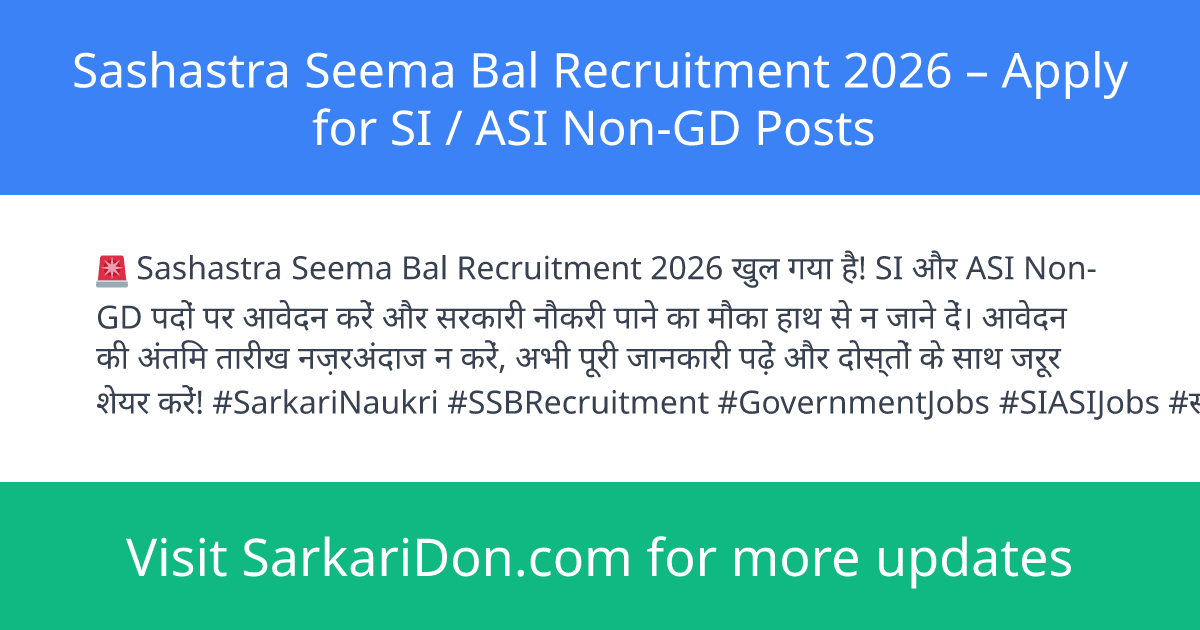| Recruitment | SSB SI / ASI Non-GD Recruitment 2026 |