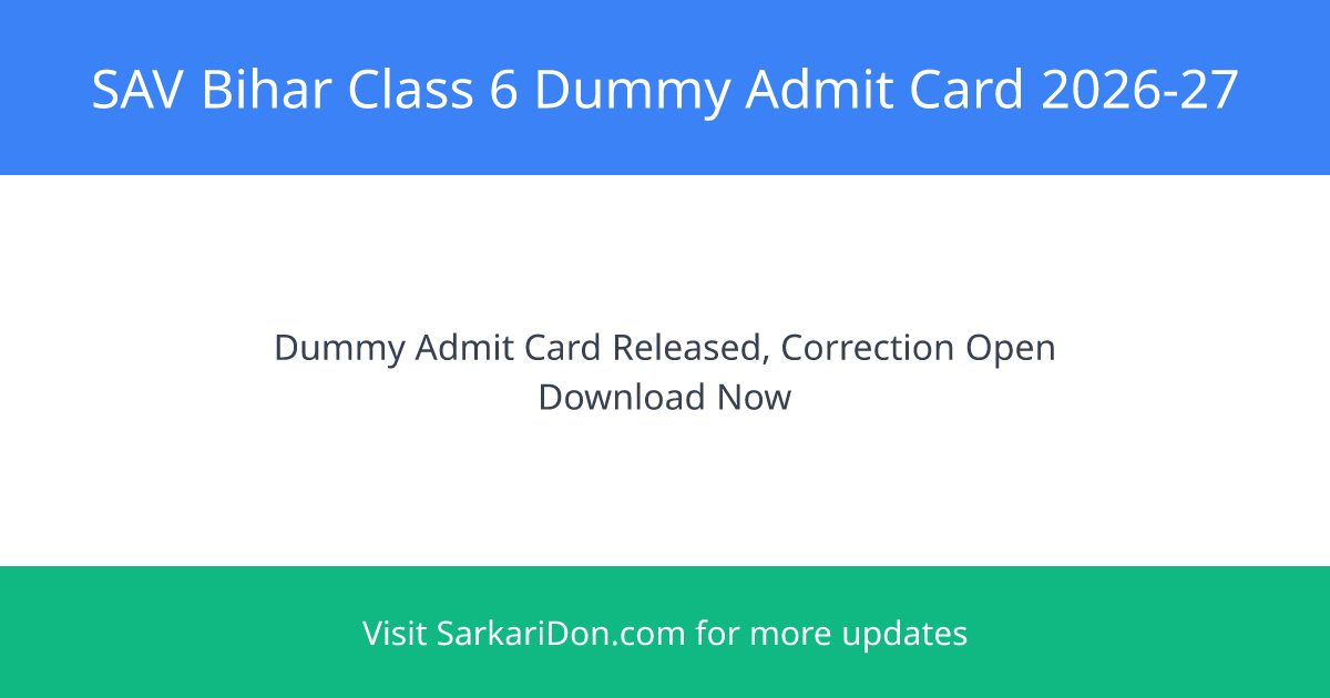 The dummy admit card was released in early October 2025 to allow candidates to verify and correct their details. - Where can I download the SAV Bihar Class 6 Dummy Admit Card 2026-27?