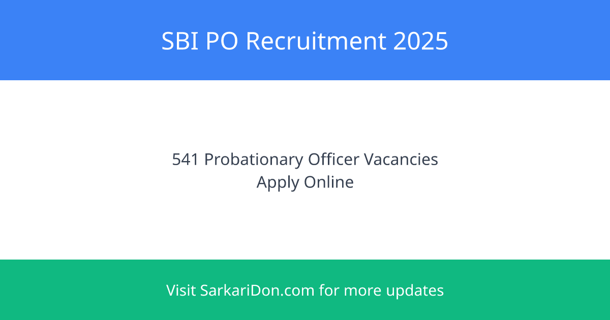 SBI PO Recruitment 2025: 541 Vacancies Announced for Probationary Officer Positions