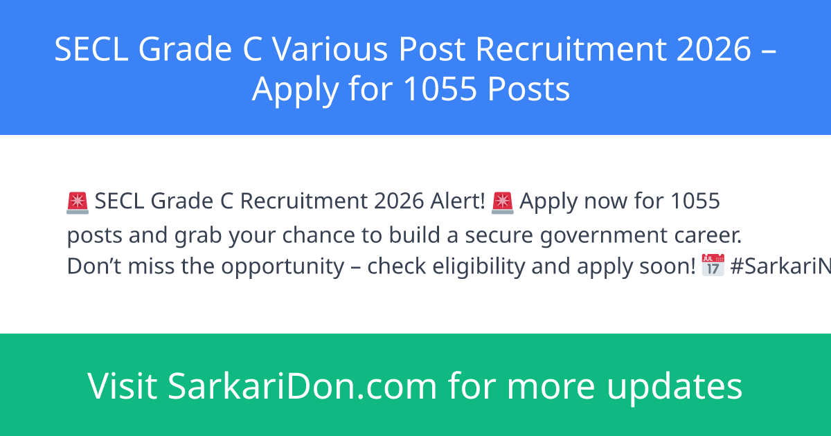 SECL Grade C Various Post Recruitment 2026 – Apply for 1055 Posts