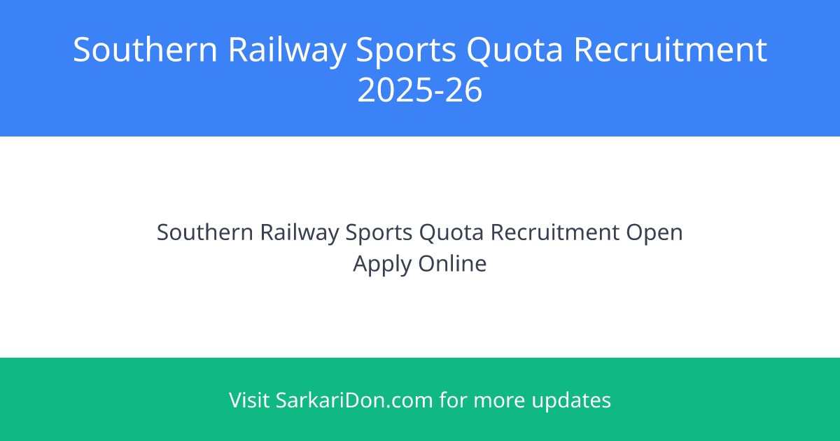 The Southern Railway has announced recruitment against the Sports Quota for the year 2025-26. This recruitment is open to all eligible sports persons who are Indian citizens. Interested candidates can apply for various posts across different levels in the pay matrix of the 7th C.P.C.