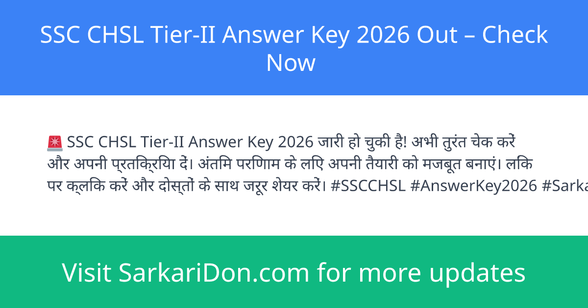 SSC CHSL Tier-II Answer Key 2026 Out β Check Now