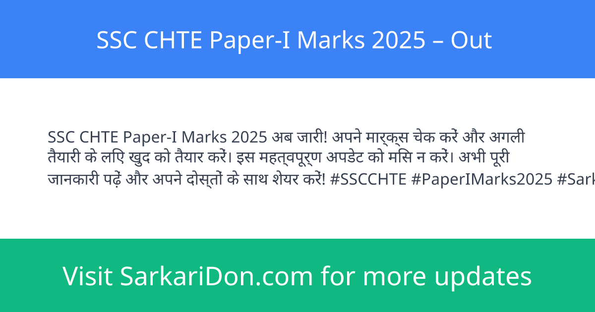 SSC CHTE Paper-I Marks 2025 β Out