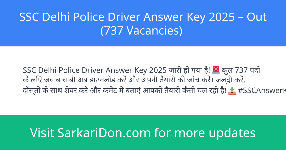 SSC Delhi Police Driver Answer Key 2025 β Out (737 Vacancies)