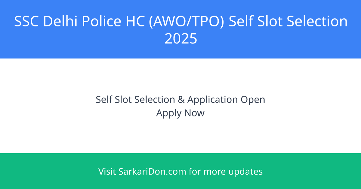 ๐ข SSC Delhi Police HC (AWO/TPO) Self Slot Selection 2025 Announcement