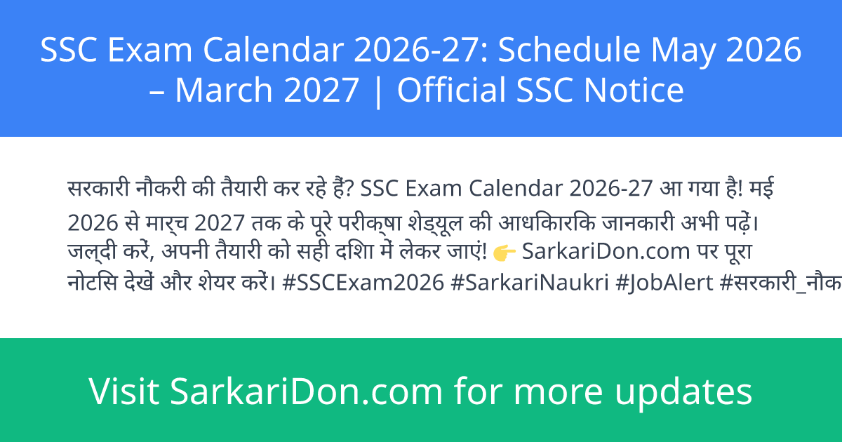 SSC Exam Calendar 2026-27: Schedule May 2026 β March 2027 | Official SSC Notice