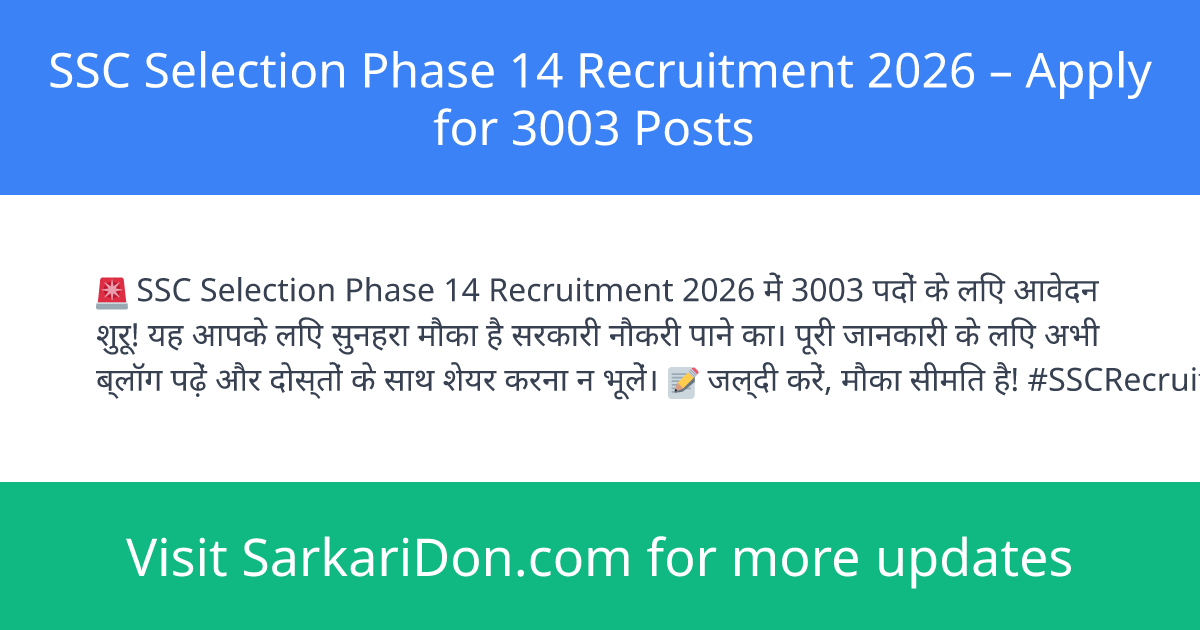 SSC Selection Phase 14 Recruitment 2026 โ Apply for 3003 Posts
