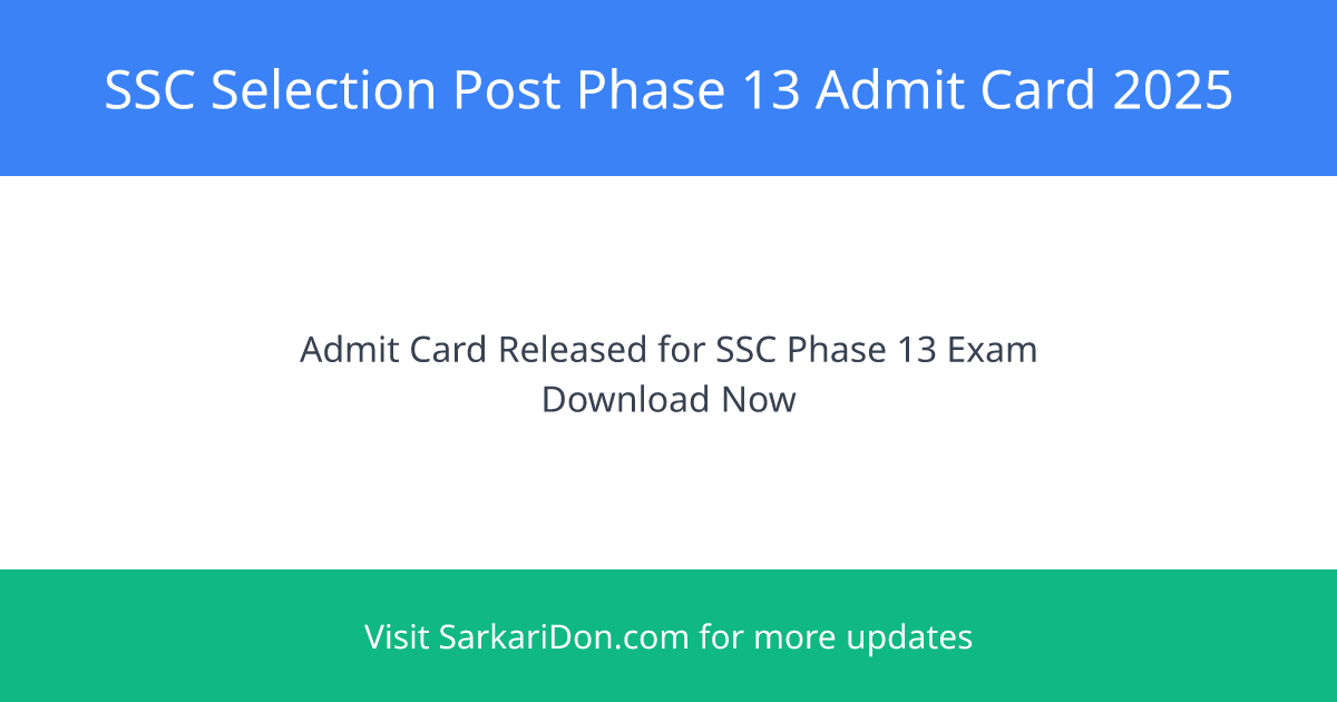 SSC Selection Post Phase 13 Admit Card 2025: एसएससी सिलेक्शन पोस्ट फेज 13 एडमिट कार्ड जारी