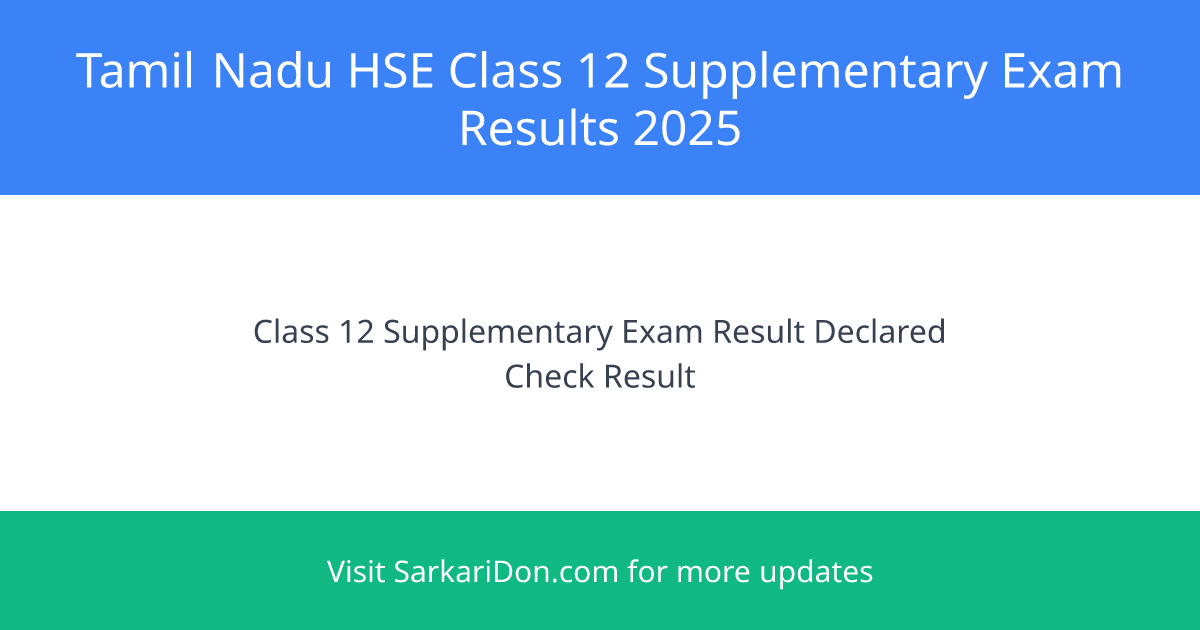 Tamil Nadu HSE Class 12 Supplementary Exam 2025 Results - Direct Download Link