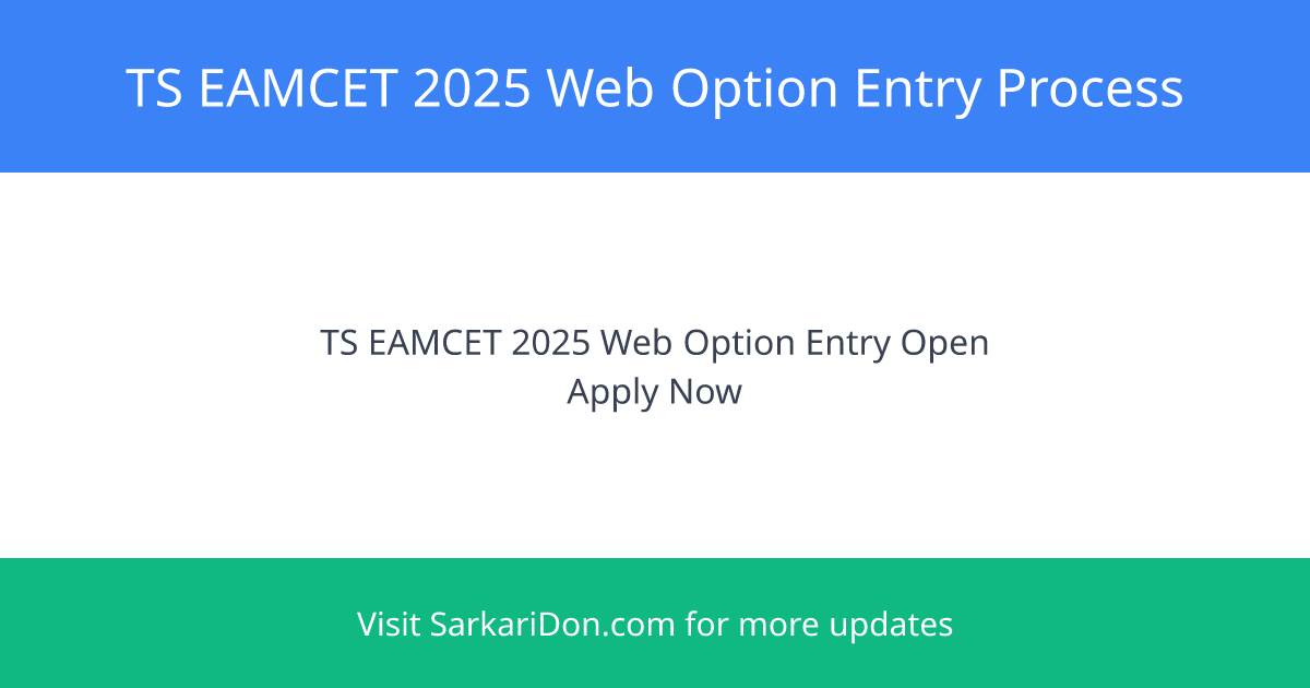 The TS EAMCET 2025 web option entry process started on July 6, 2025, but the link activation was delayed from 4:00 pm to 6:00 pm due to technical issues and seat intake revisions. Candidates can exercise their options for college and branch preferences from July 6 to July 10, 2025.