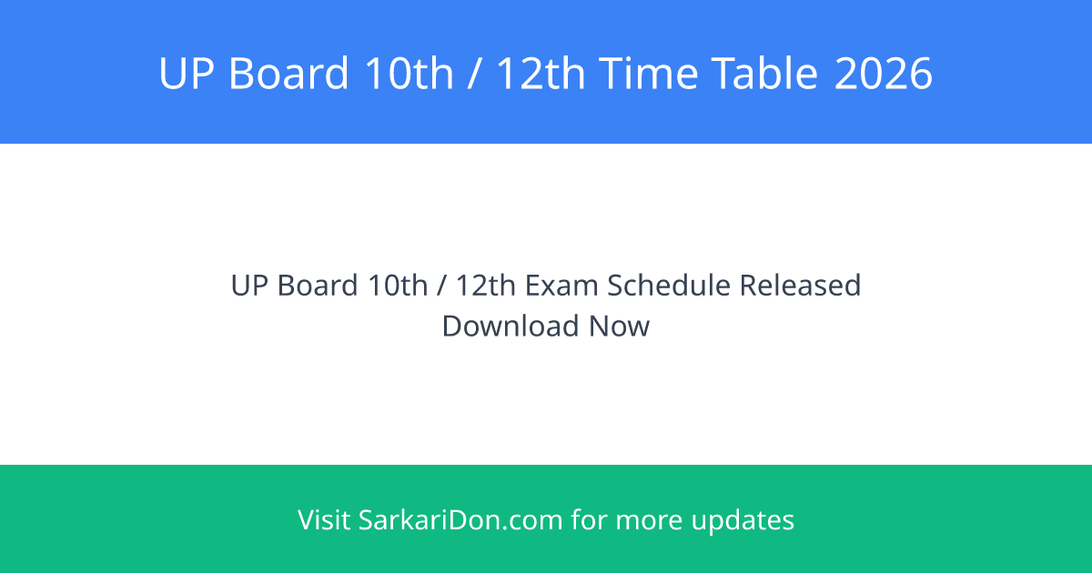 UP Board 10th / 12th Time Table 2026: Exam Schedule & Details Announcement