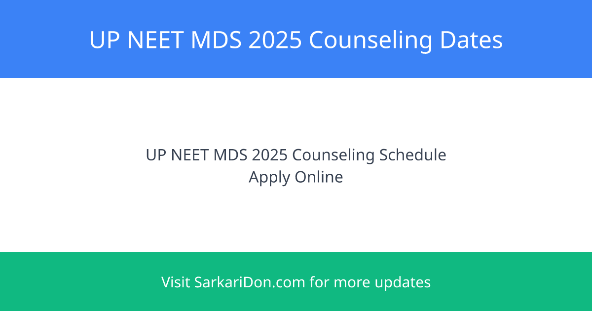 UP NEET MDS-2025 Counseling Schedule: Key Dates and Registration Details