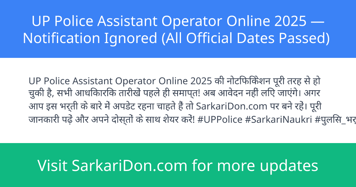UP Police Assistant Operator Online 2025 — Notification Ignored (All Official Dates Passed)