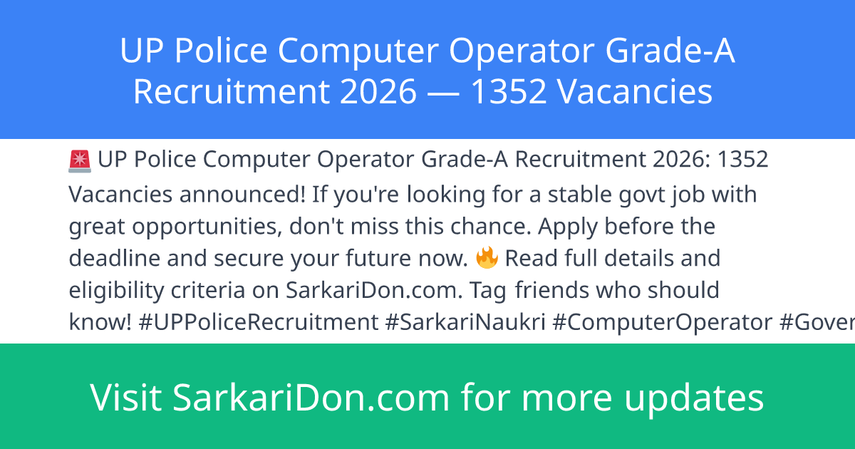 UP Police Computer Operator Grade-A Recruitment 2026 β 1352 Vacancies