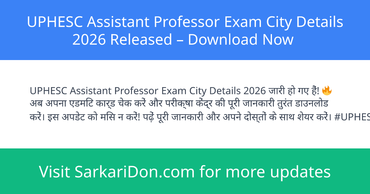 The UPHESC Assistant Professor exam city details for 2026 have been officially released. Candidates who applied for the Uttar Pradesh Higher Education Service Commission (UPHESC) Assistant Professor Recruitment 2024 can now check their exam city information and download the admit card. This is a crucial step before the exam scheduled for April 18, 2026.