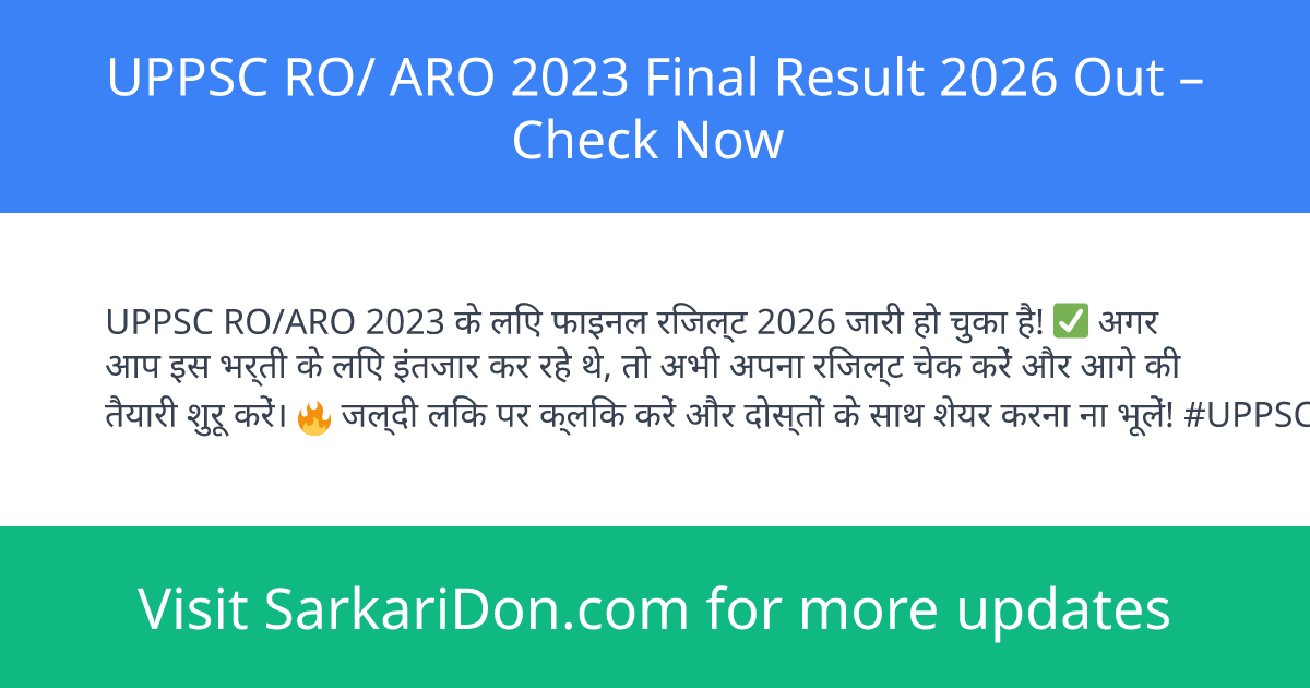 UPPSC RO/ ARO 2023 Final Result 2026 Out β Check Now