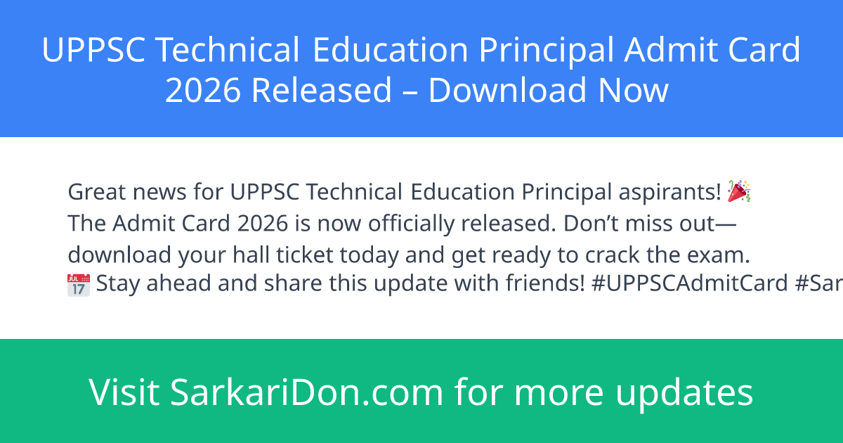 UPPSC Technical Education Principal Admit Card 2026 Released – Download Now