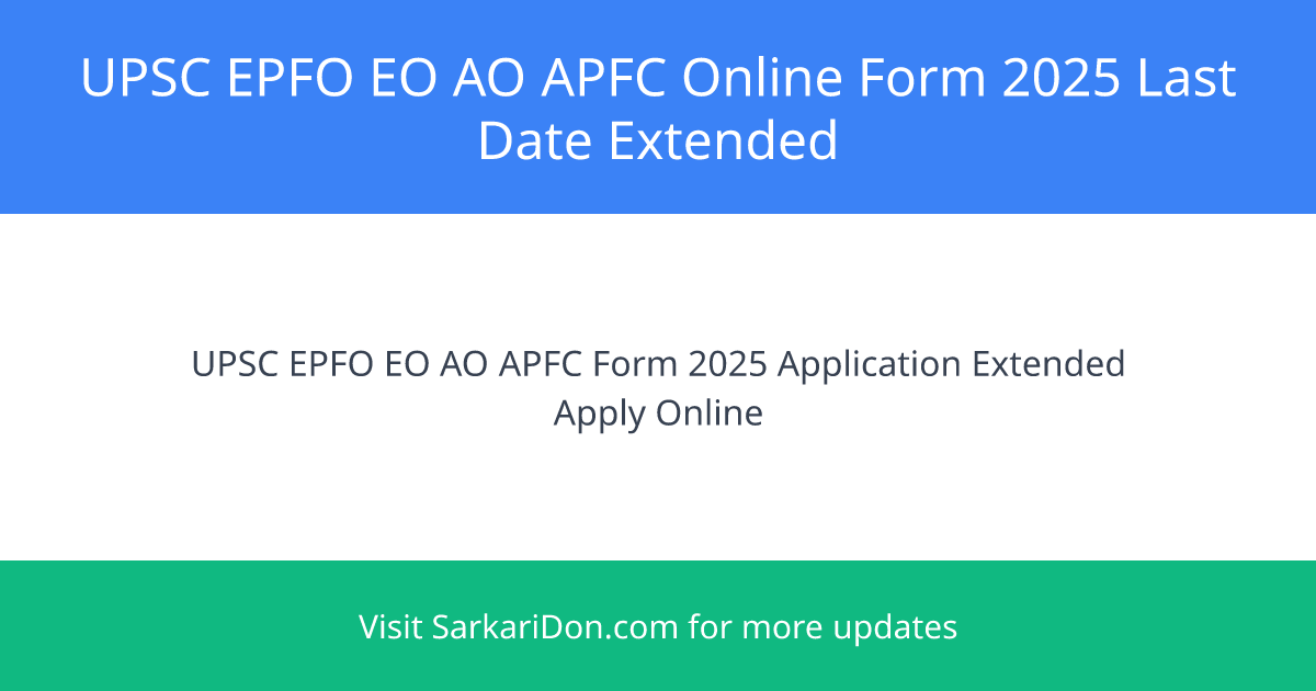 UPSC EPFO EO / AO / APFC Online Form 2025: Last Date Extended Now!