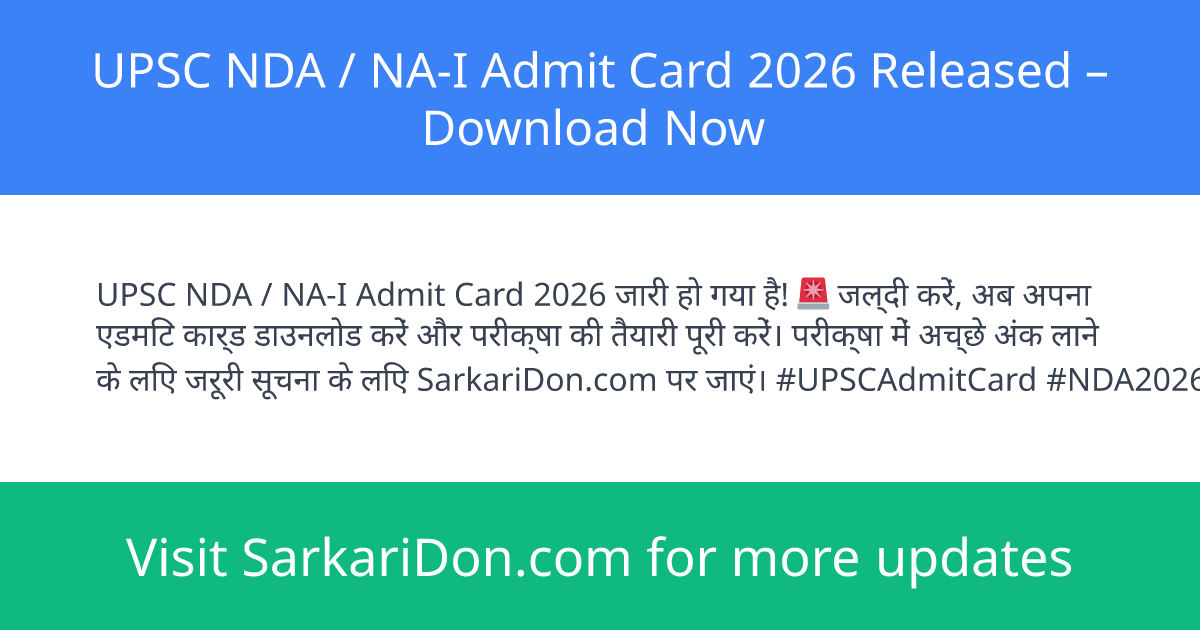 The Union Public Service Commission (UPSC) has released the UPSC NDA / NA-I Admit Card 2026 on April 1, 2026. Candidates who have applied for the NDA / NA-I Recruitment 2026 can now download their admit cards to appear for the exam scheduled on April 12, 2026.