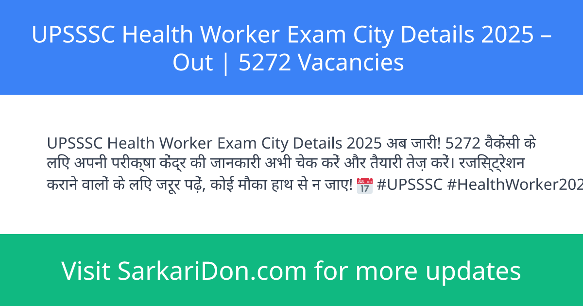 UPSSSC Health Worker Exam City Details 2025 – Out | 5272 Vacancies
