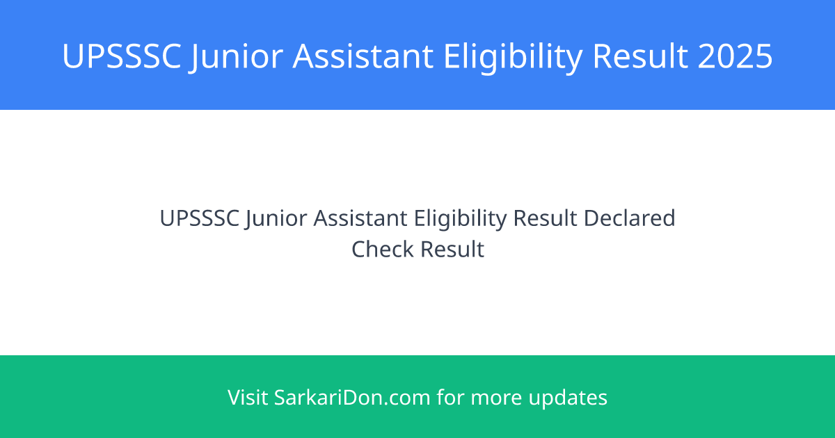 Result Declared! The UPSSSC Junior Assistant 12/2024 Eligibility Result 2025 is now available. Check your sarkari result from the official site below.