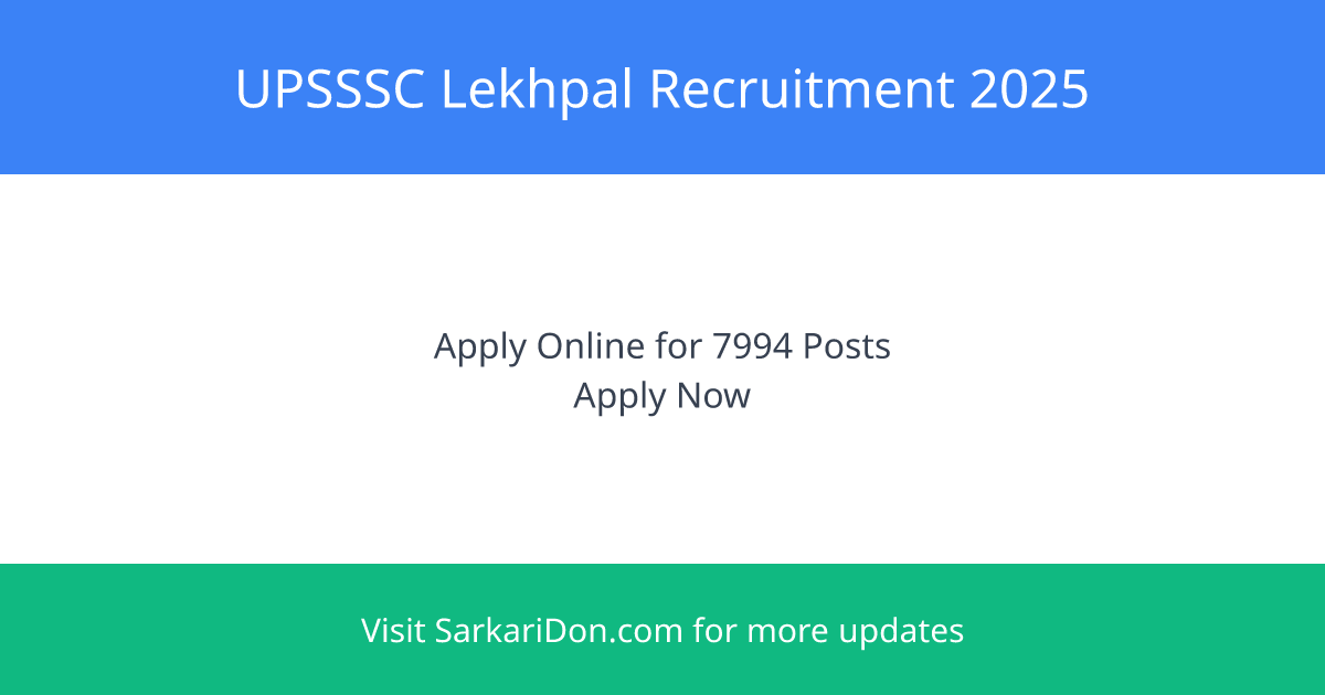 Uttar Pradesh Subordinate Service Selection Commission (UPSSSC) has released an official notification for recruitment to the post of Lekhpal with a total of 7994 vacancies. This is a fantastic opportunity to grab a government job in Uttar Pradesh. Interested candidates can apply online starting December 29, 2025. The last date to submit the application is January 28, 2026.