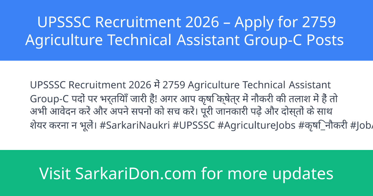 UPSSSC Recruitment 2026 β Apply for 2759 Agriculture Technical Assistant Group-C Posts