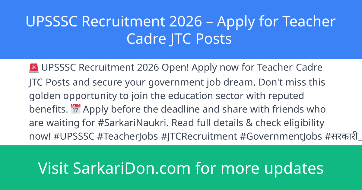 UPSSSC Recruitment 2026 โ Apply for Teacher Cadre JTC Posts