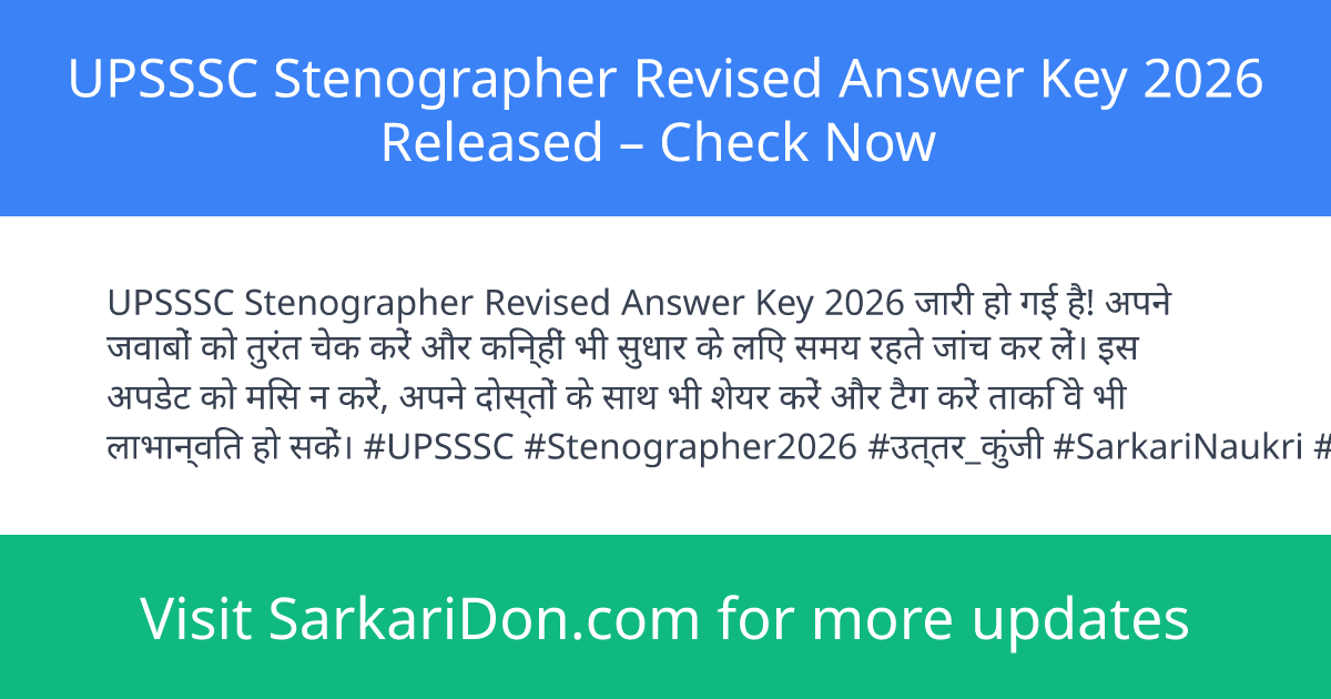 UPSSSC Stenographer Revised Answer Key 2026 Released β Check Now