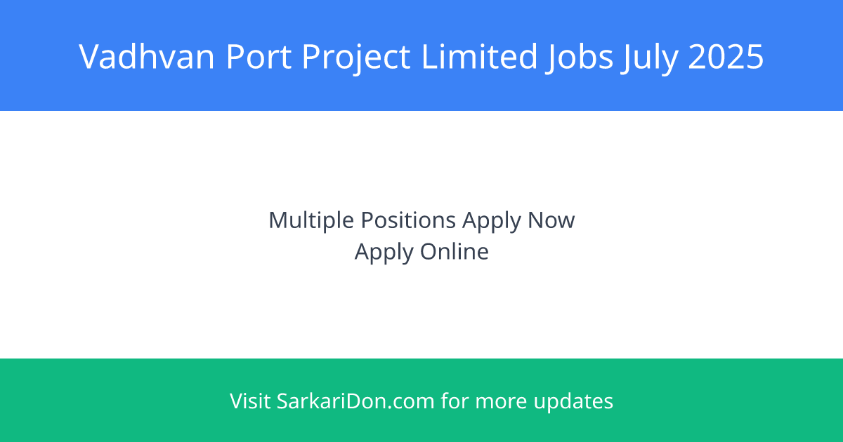 Vadhvan Port Project Limited invites applications from qualified and motivated professionals for various Contractual positions. This is a great opportunity for those looking for sarkari naukri in a reputable organization.