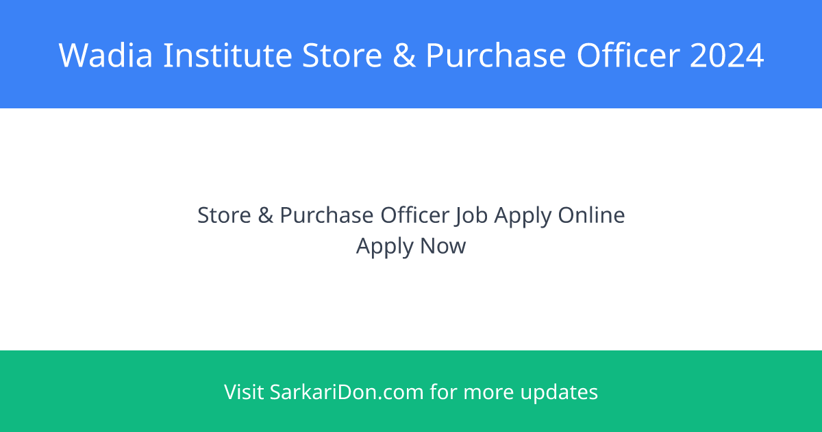 Online applications are invited from eligible Indian citizens for the position of Store & Purchase Officer at the prestigious Wadia Institute of Himalayan Geology, Dehradun. This is an excellent opportunity for those seeking government job results in the sarkari naukri arena.