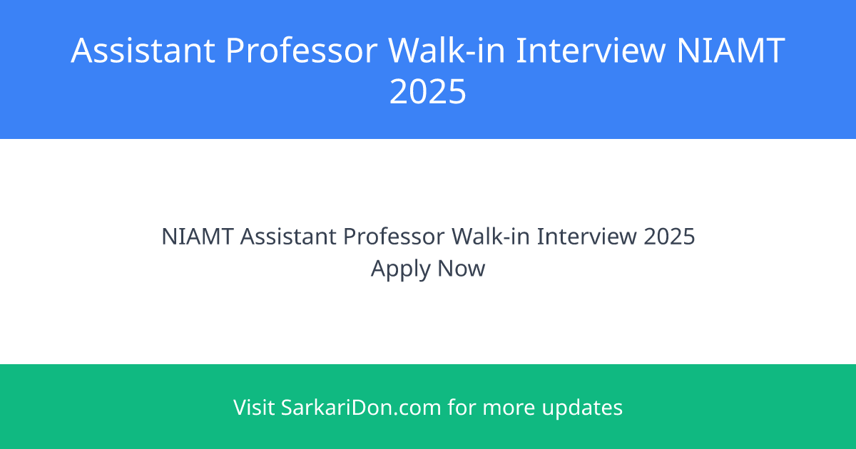 Walk-in Interview Announcement for Assistant Professors at National Institute of Advanced Manufacturing Technology