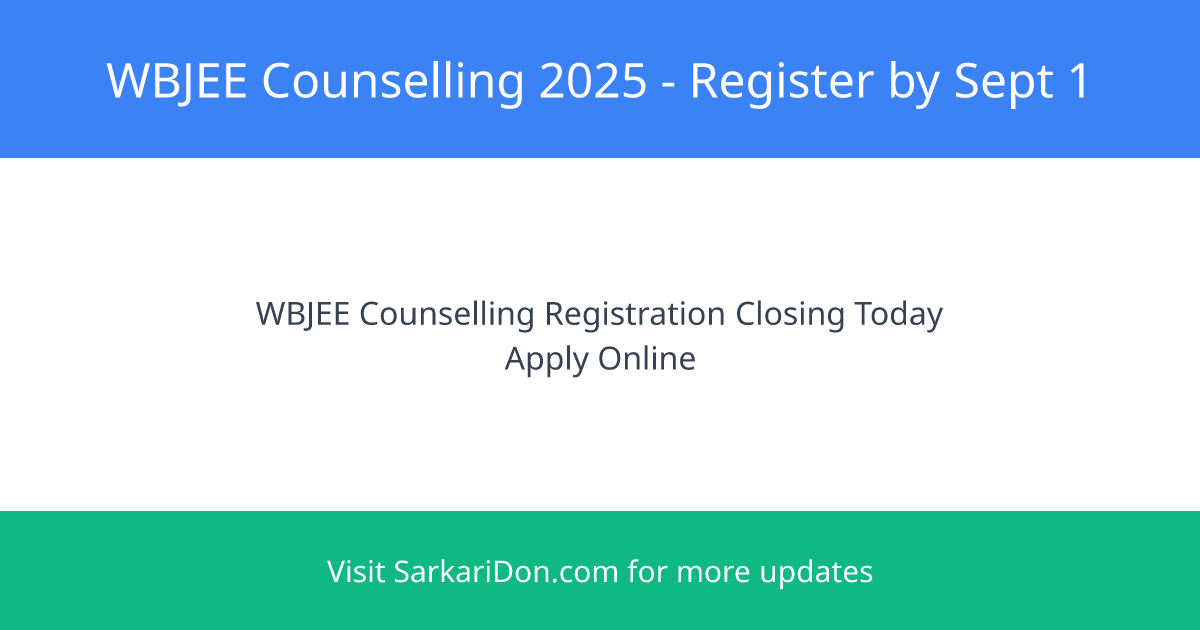 The WBJEE counselling process for 2025 has officially begun, and eligible candidates must act fast! Registrations and choice-filling will end today on September 1, 2025. To participate, candidates need to log in using their WBJEE application or roll number, complete the personal and academic details, and pay the application fee.